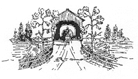 We are very happy to have to offer a couple of items in commemoration of the 50th Anniversary of the National Society for the Preservation of Covered Bridges. Tote Bag - Has the National Society for the Preservation of Covered Bridges emblem in dark blue on front pocket measuring 12 1 /2" by 15 1 /2" with a top snap and 20" handle straps. Available for $15 including shipping Ornament -Also has the Society emblem. It's a 3" round glass maroon ornament with the emblem in gold. Available for $7 including shipping Pens -Pens have "I love Covered Bridges - N.S.P.C.B." written on them. Available for $1.25 including shipping. |